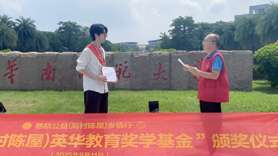 金秋九月,硕果盈枝。2025年9月,慈航公益乡情行项目组成员与基金管委会委员陈洪东一行四人,带着这份乡土的期盼,前往华南师范大学,为“英华教育奖学基金”之”栋梁之才奖”获得者——丘锐同学,送上热烈祝贺和5500元助学奖励。