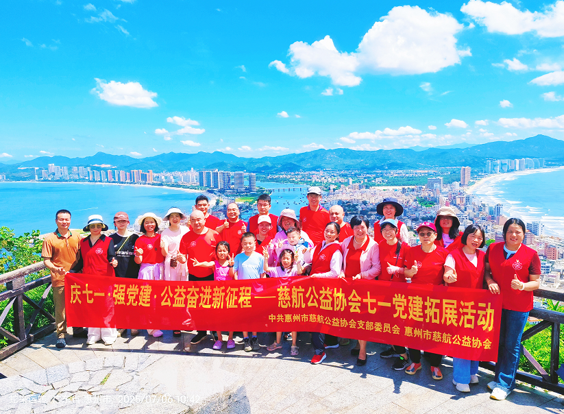 光辉七月,为庆祝中国共产党成立104周年,慈航公益协会于2025年7月5日至6日在惠东举办了一场以 “庆七一・强党建・公益奋进新征程” 为主题的七一党建拓展活动。