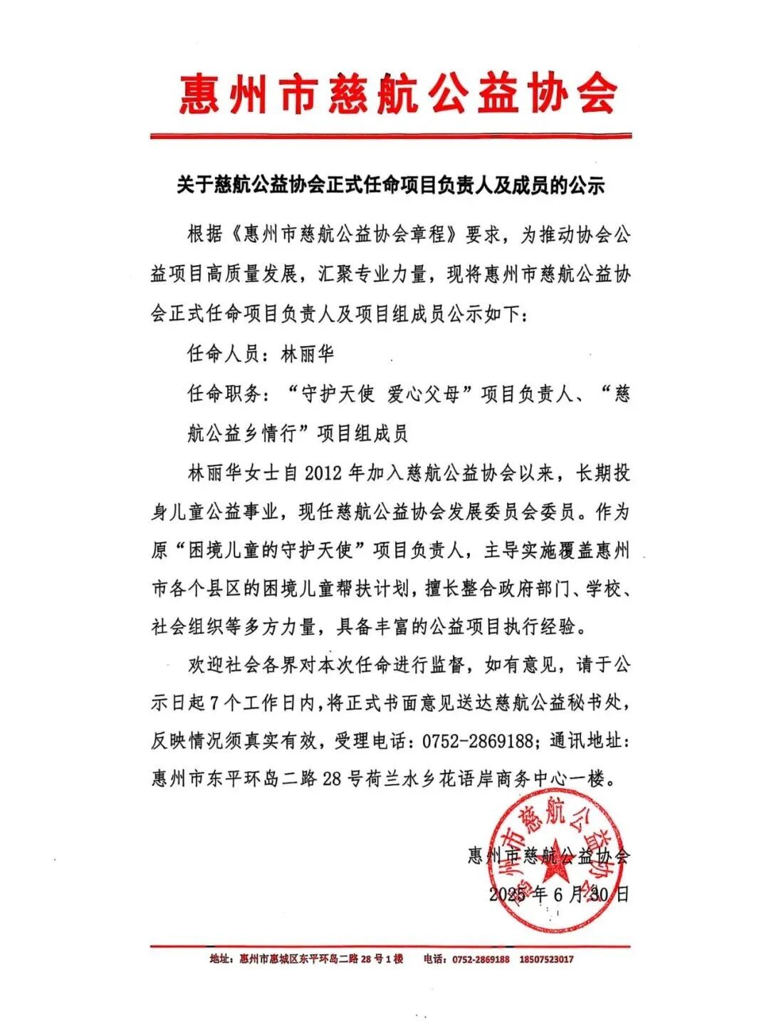 【慈航-通知公告】关于慈航公益协会正式任命项目负责人及成员的公示