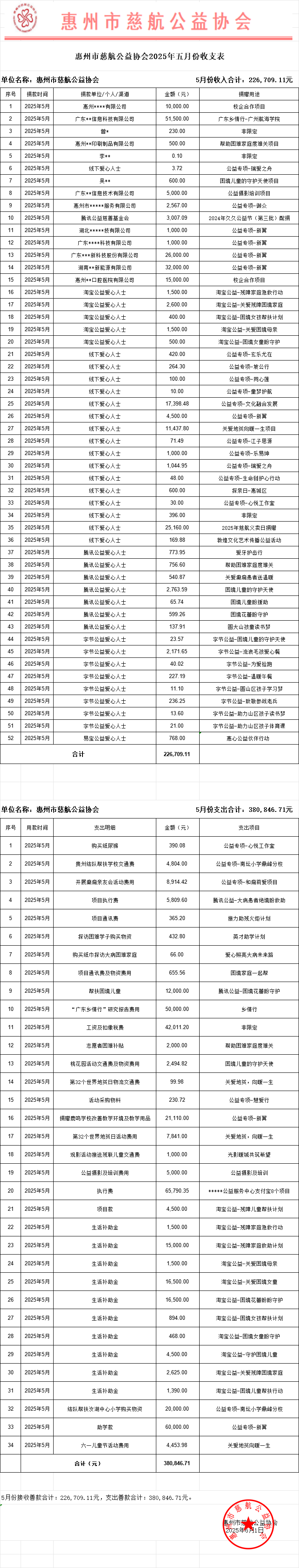 概要:截至2025年5月31日收到善款合计:226709.11元;截至2025年5月31日支出善款合计:380846.71元;